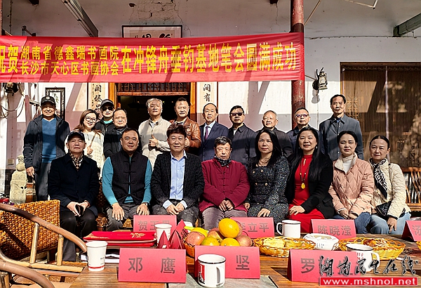 笔会现场嘉宾云集,阵容专业多元。长沙市天心区文联副主席、区书画协会主席李春和,活动承办方冲锋舟垂钓基地代表贺玉凤女士、邓鹰先生,区书画协会秘书长罗雅,以及周解新、汤建国等十余位资深书法家,李疯、梁铁鹏两位篆刻家,特邀嘉宾曹菊香、刘丽红女士均出席活动,涵盖书画篆刻多领域的艺术力量,为笔会注入了浓厚的专业氛围与艺术活力。
